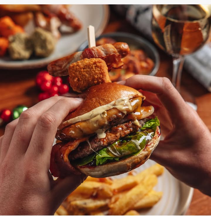 Try our delicious festive burger or our mouthwatering slow cooked belly pork, if you just fancy some sharers for the table check out our Brie wedges, pigs in blankets or our hash brown bites 😋